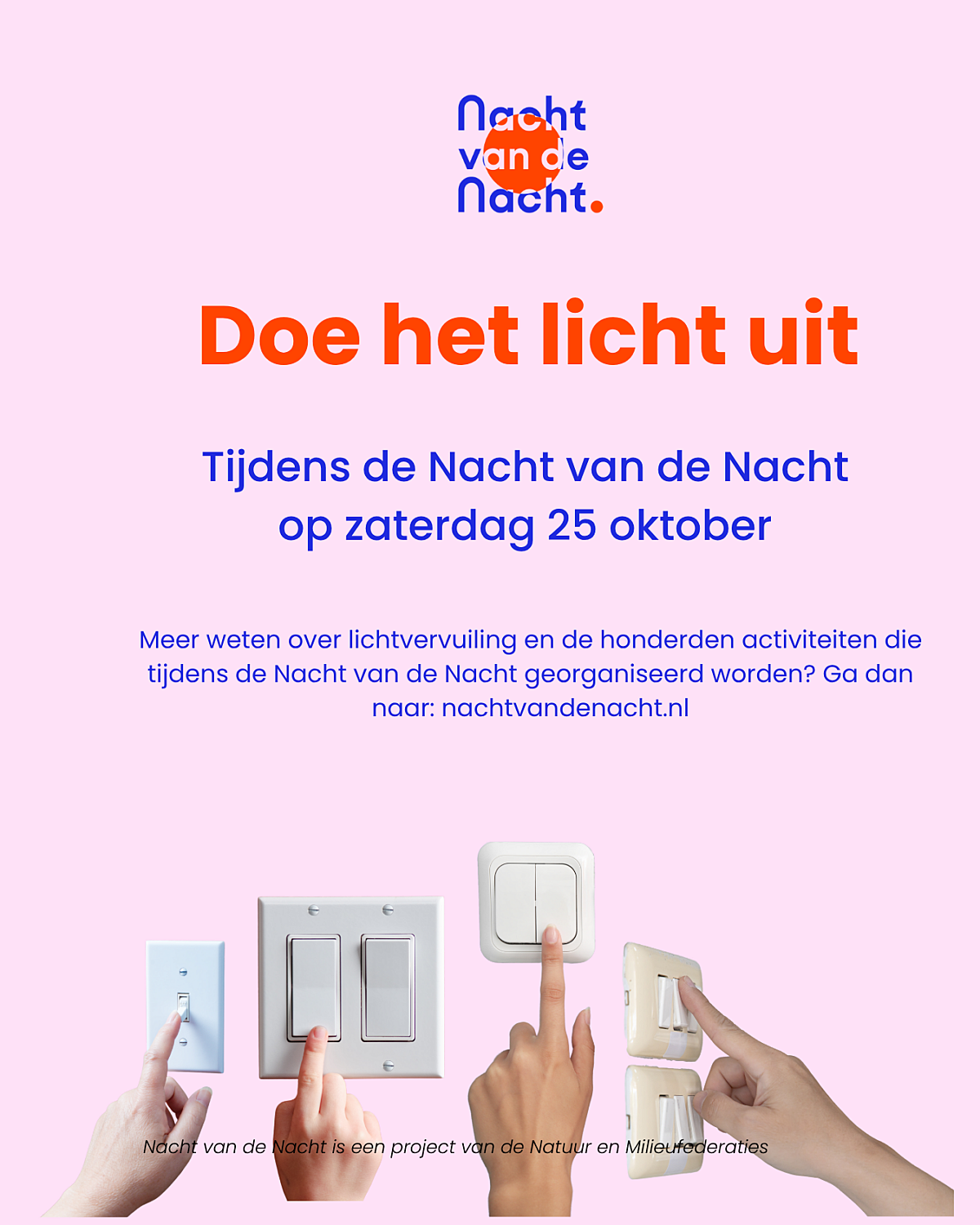 Ook in 2025 organiseert IVN Hoogeveen de Nacht van de Nacht. Dit jaar vindt het plaats op zaterdag 25 oktober, in het weekend dat de wintertijd ingaat. Tijdens deze avond vragen we aandacht voor de gevolgen van lichtvervuiling.